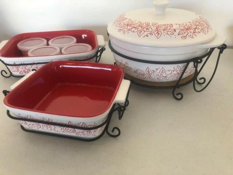Vintage ceramic bakers with baskets set of 6. Indulge your space with culinary must haves from cook s essentials. One 4 25 qt ceramic casserole one wire rack one plastic lid one ceramic lid microwave safe. See more ideas about companion cooking recipes.