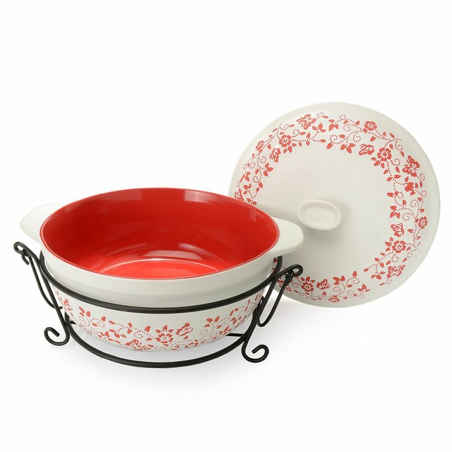 Cook s companion ceramic casserole set. Disposable aluminum foil pans premium quality pan for baking cooking 2 lb 50 pcs. Temp tations by tara holiday ovenware casserole baking dish 2qt lid wire rack. According to reviewers it s the perfect cross between ceramic and glass casserole dishes. Le creuset 4 75 qt cast iron oval oven with grill pan lid.