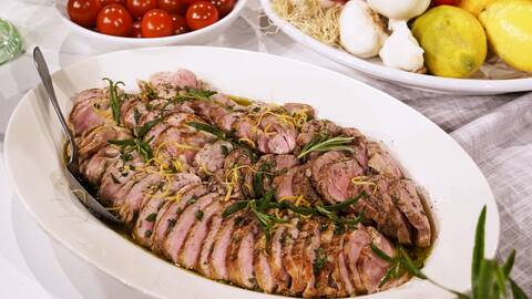 Fläskfilé kan även serveras kall vid buffé. Bryn fläskfilén runtom i smör. Genom att marinera fläskfilén två gånger blir den mör och får extra god smak. Servera fläskfilén med den krämiga basilikapotatisen och rostade cocktailtomater.